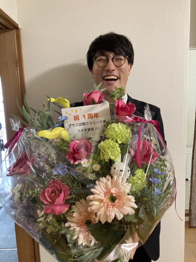 毎日がバタバタで開院から1年経ったことを思う暇もなく過ごしていた私たちに、うれしいお祝いのお花が届きました💐