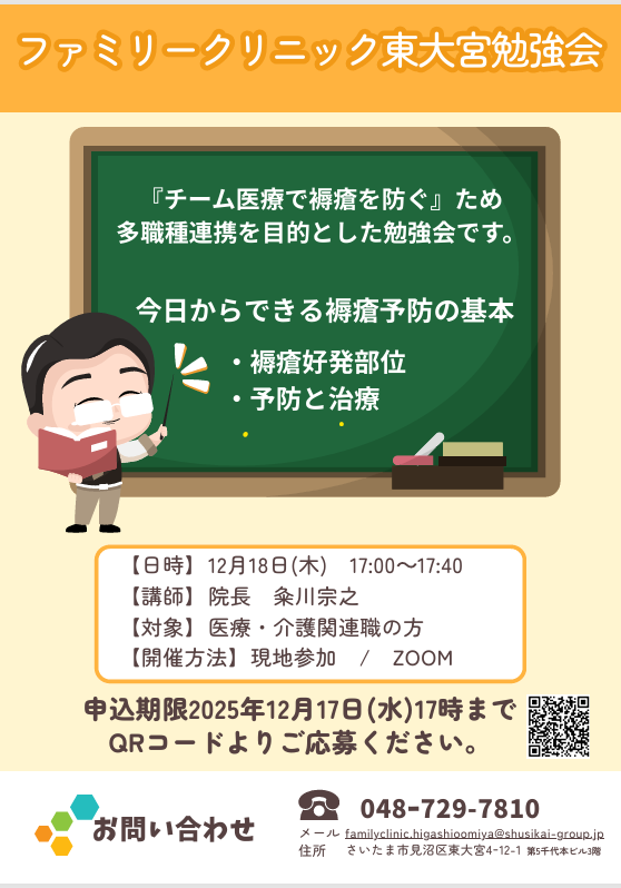 このたび、当院では 「チーム医療で褥瘡を防ぐ」 をテーマとした多職種連携の勉強会を開催いたします。