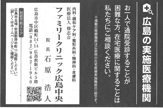 2025年12月11日の中国新聞朝刊に当院の紹介を掲載いただきました。